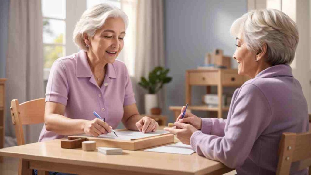 Occupational therapy is a critical part of Alzheimer’s rehabilitation, focusing on sustaining or enhancing an individual’s capacity for daily living tasks. The therapy intends to address the issues Alzheimer’s patients face in activities such as dressing, bathing, consuming food, and maintaining personal hygiene. Occupational therapists evaluate the patient’s functional competencies and formulate personalized intervention strategies to boost their independence and quality of life. Various techniques and tactics are used, including environmental modification, provision of assistive equipment, and implementation of compensatory strategies to facilitate daily task engagement. Occupational therapists collaborate closely with patients, helping them reclaim or sustain their abilities, adapt to cognitive changes, and foster a feeling of achievement and well-being.
